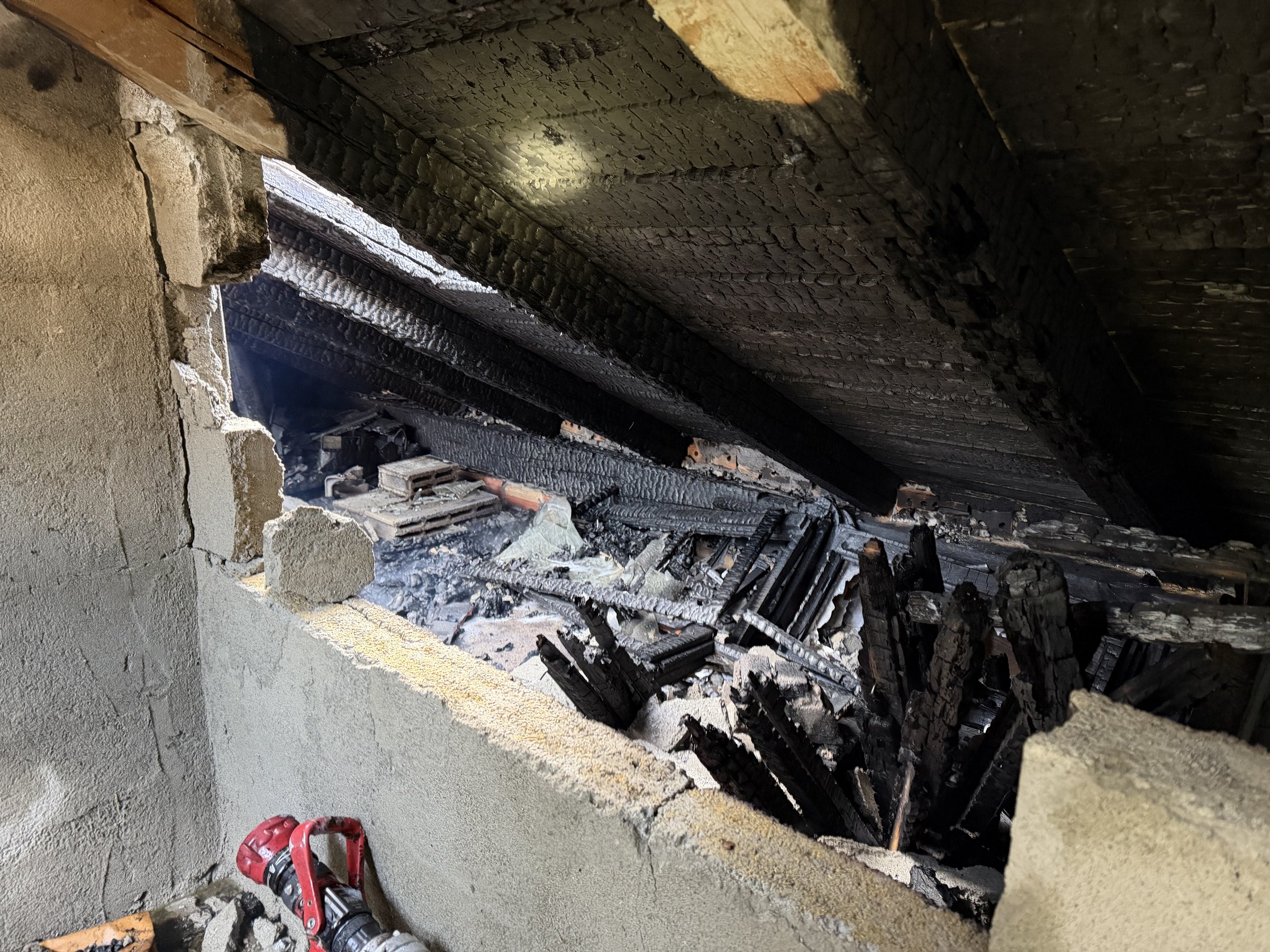 Als die Löscharbeiten zum Großteil abgeschlossen wurden begann die Polizei mit der Brandermittlung und die Öffnung des Daches wurde vorgenommen, um alle versteckten Glutnester zu lokalisieren.