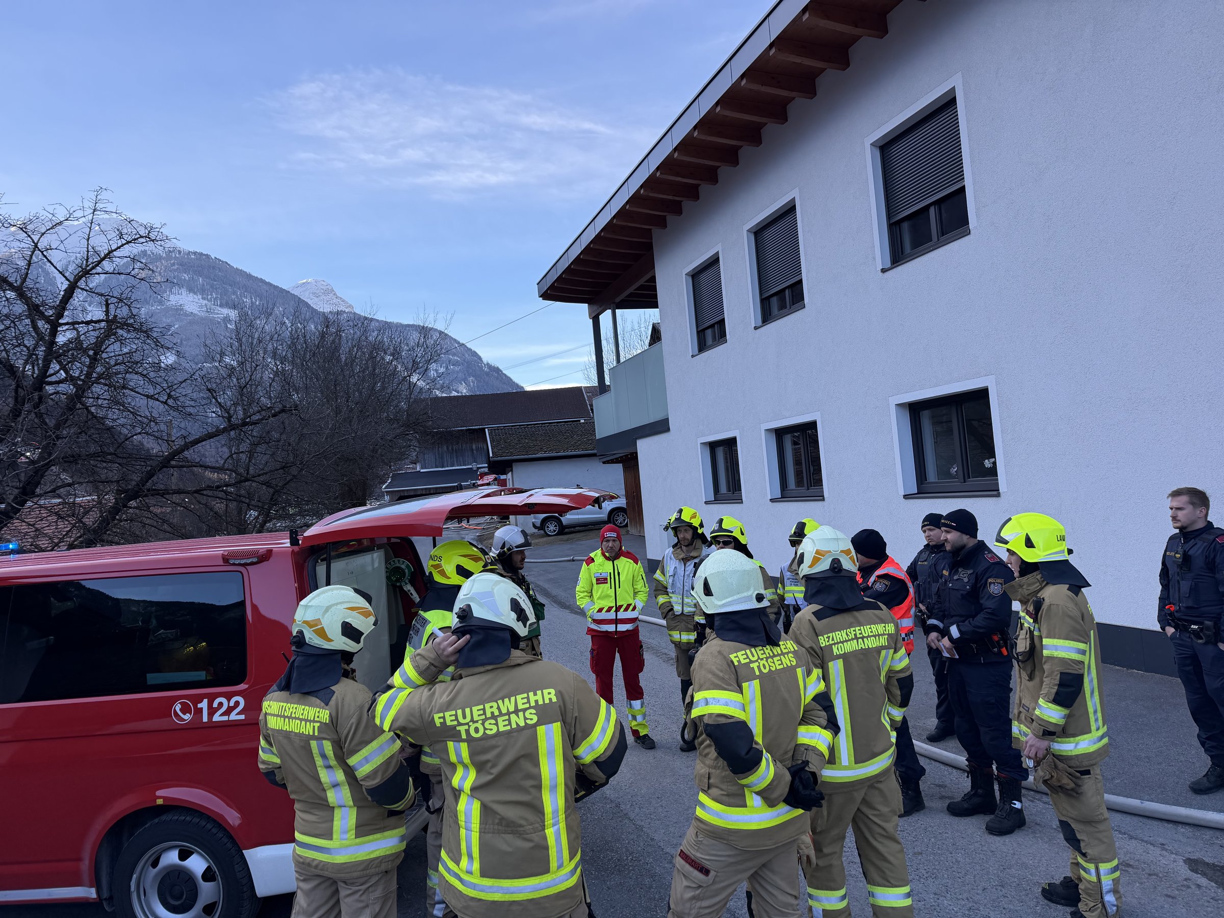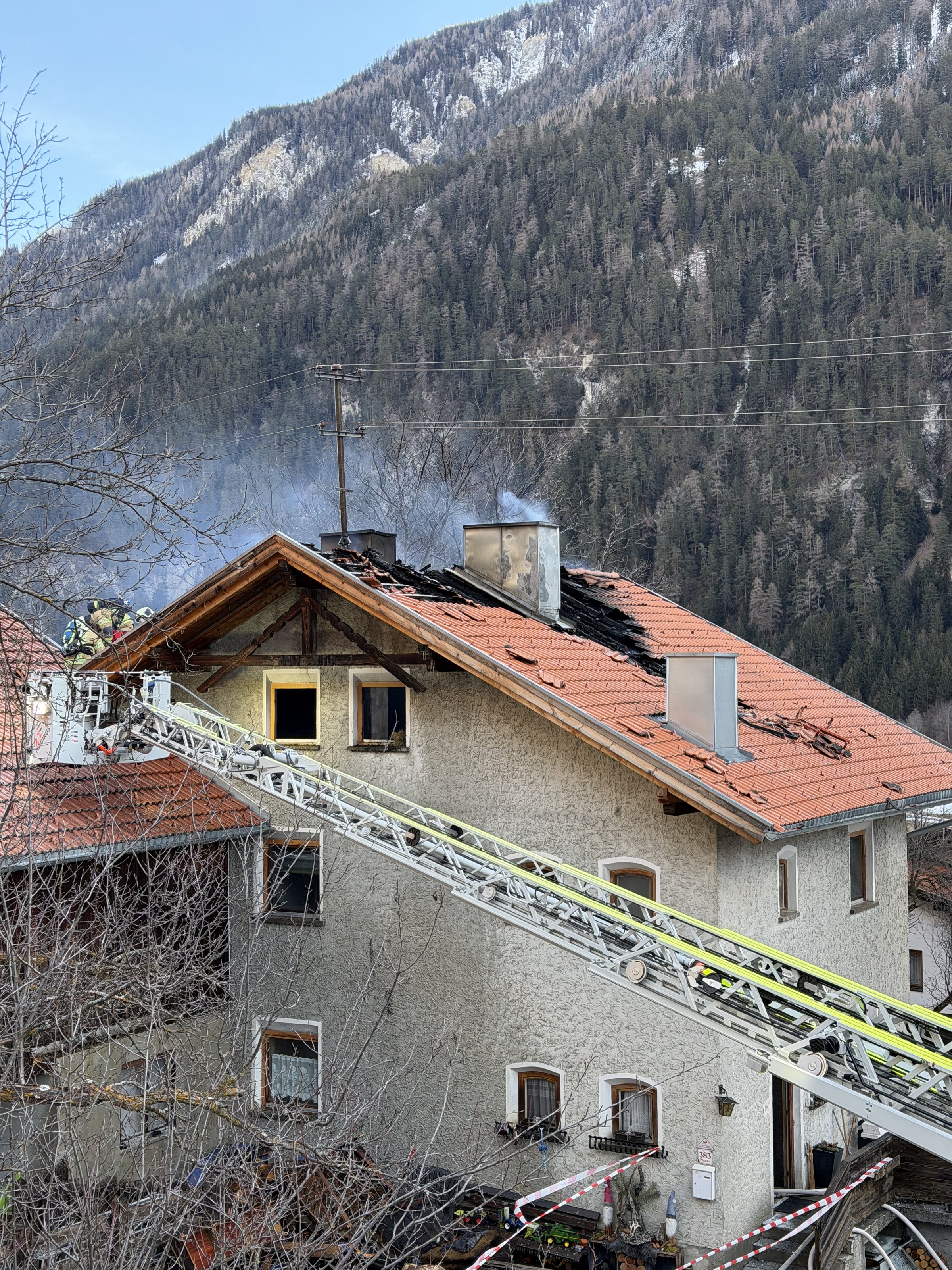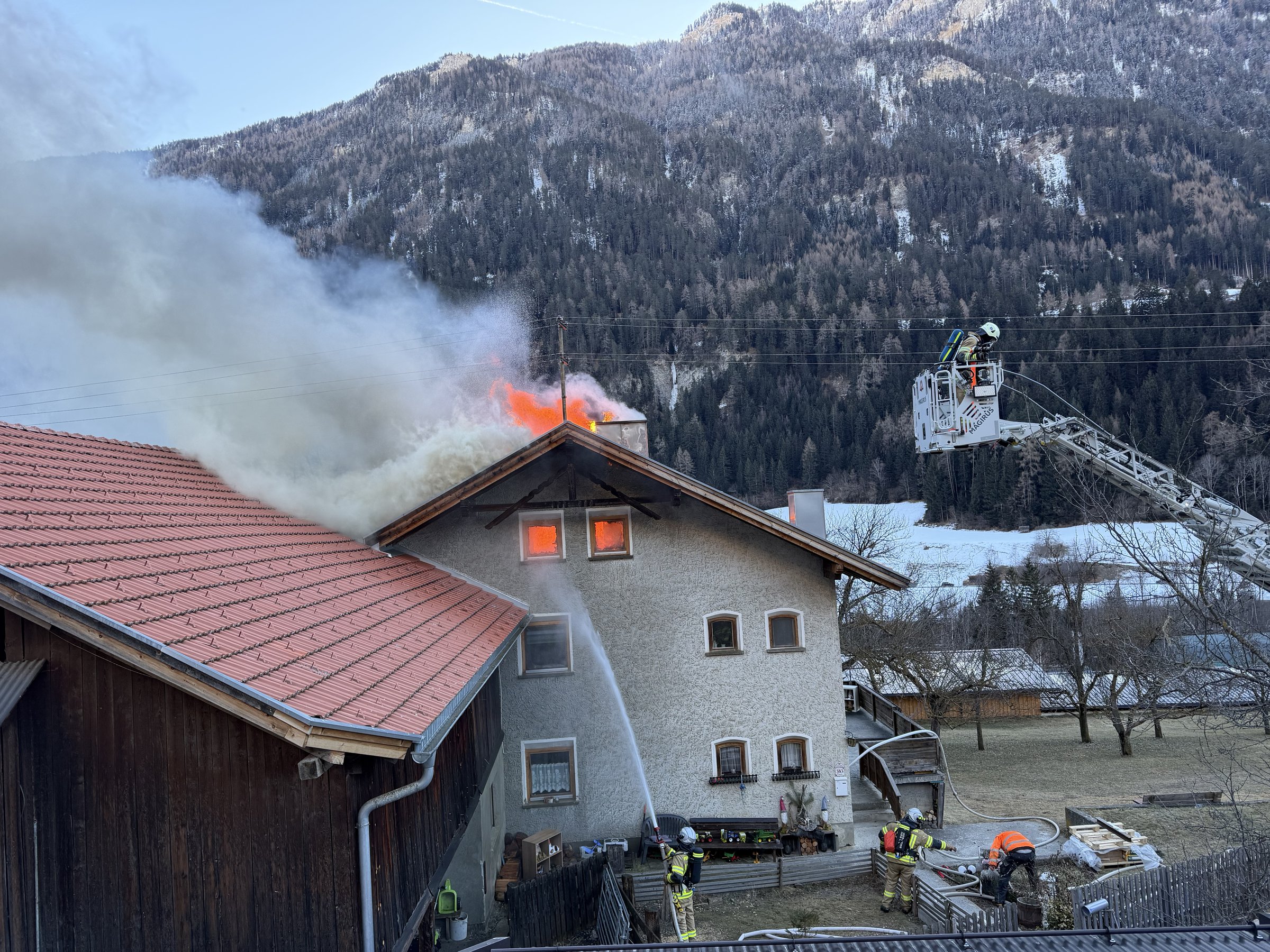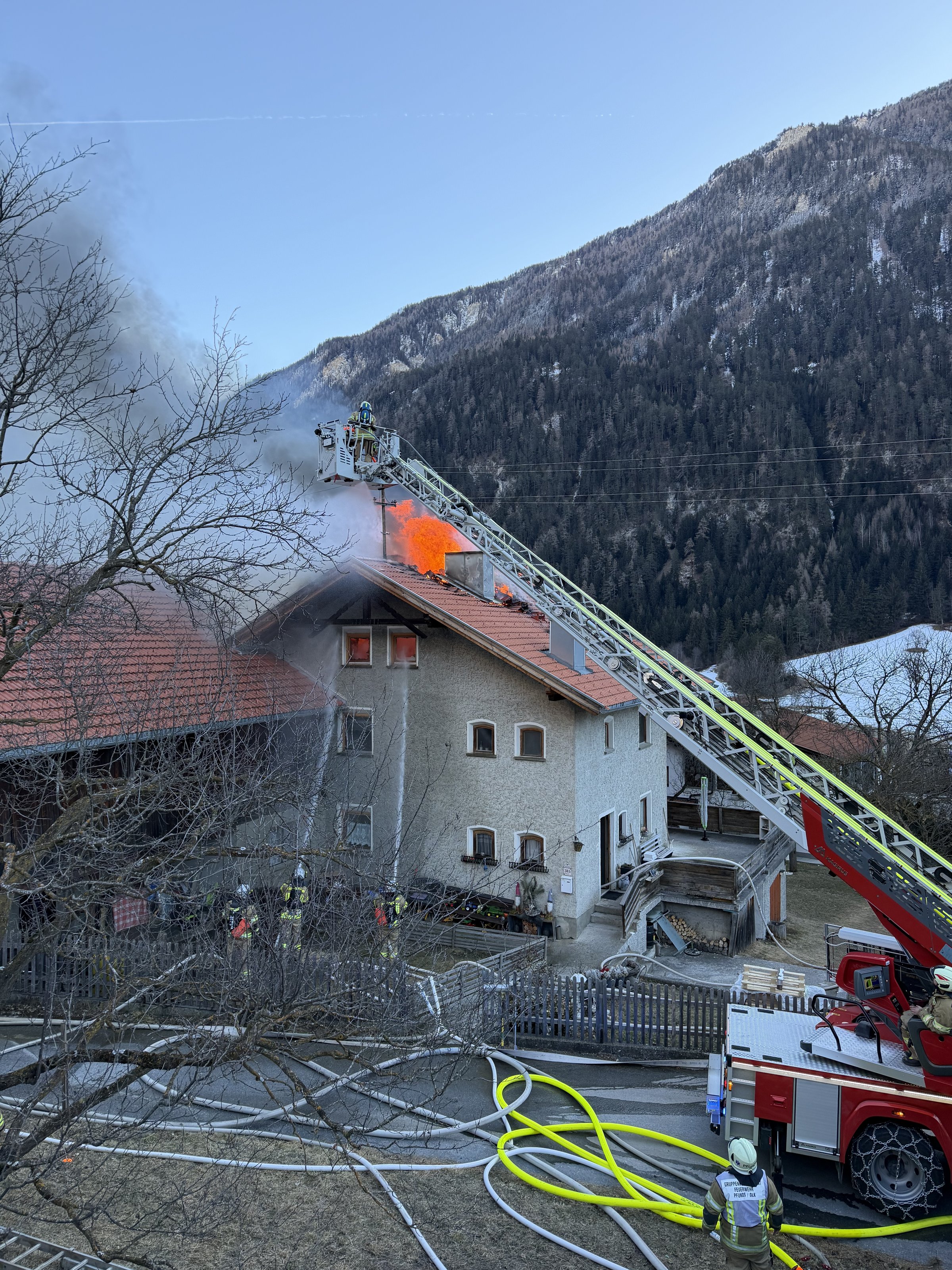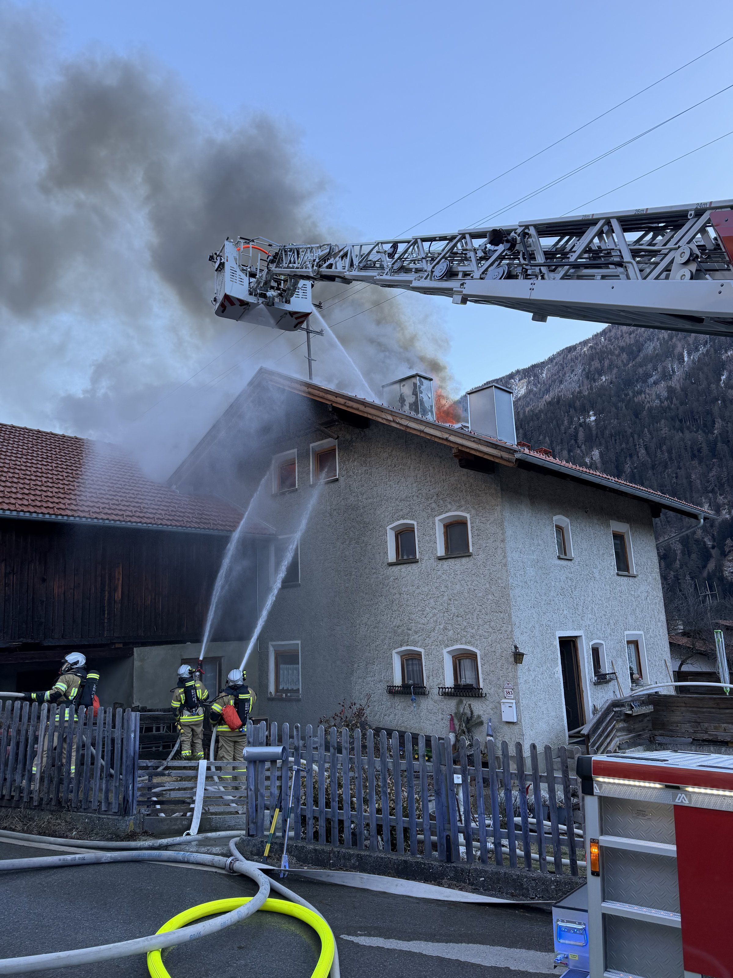 Beim Eintreffen der ersten Einsatzkräfte wurden umgehend die Feuerwehren Tösens, Nauders und Prutz nachalarmiert, da der Brand bereits sich auf den gesamten Dachboden ausgebreitet hatte.