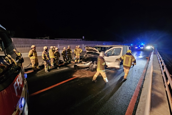 Ein Kleintransporter war von der Straße abgekommen, touchierte einen Bauzaun und prallte gegen eine Betonmauer, bevor er wieder auf der Straße zu Stehen kam. Der Fahrer des Fahrzeugs wurde bereits vom kurz vorher eingetroffenen Rettungsdienst versorgt.